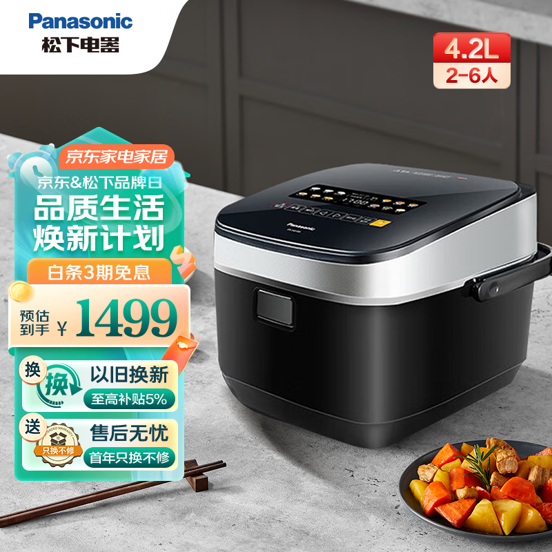 松下(Panasonic)4.2L电饭煲 IH电磁加热电饭煲 玻屏触控面板 一键式可拆洗 不锈钢内盖 SR-HG155价格:1499.00元!