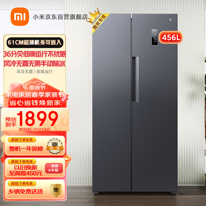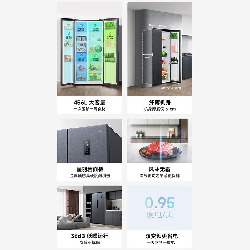 米家小米出品456L对开门大容量家用冰箱双开门双变频节能墨羽岩面板61cm嵌入超薄机身BCD-456WMEA价格:1899.00元!