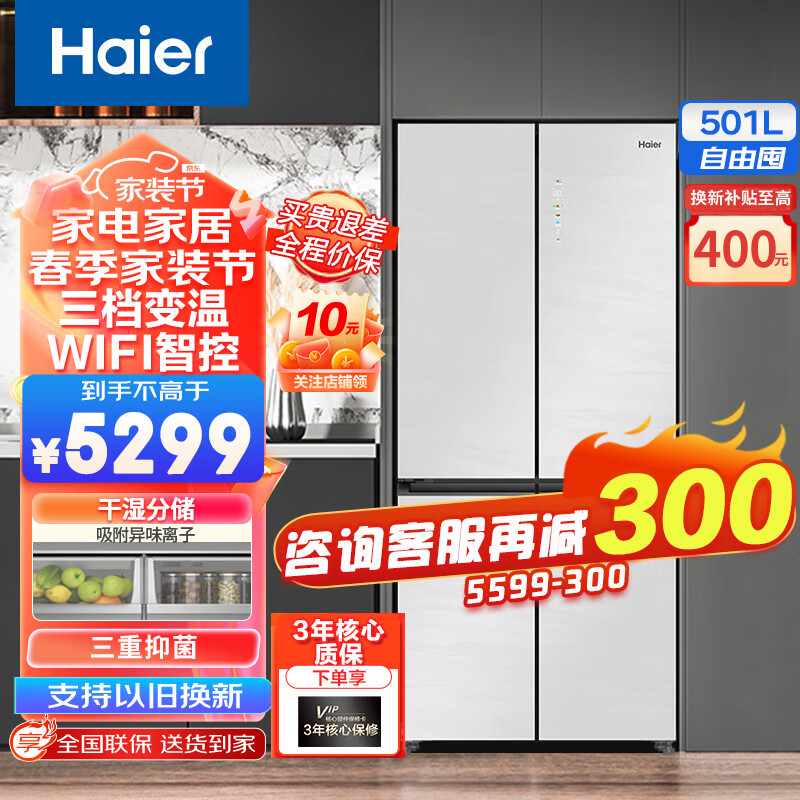 海尔(Haier)冰箱家用大容量一级变频风冷无霜阻氧干湿分储三重杀菌家用冰箱节能省电彩膜显示屏母婴三档变温价格:5599.00元!