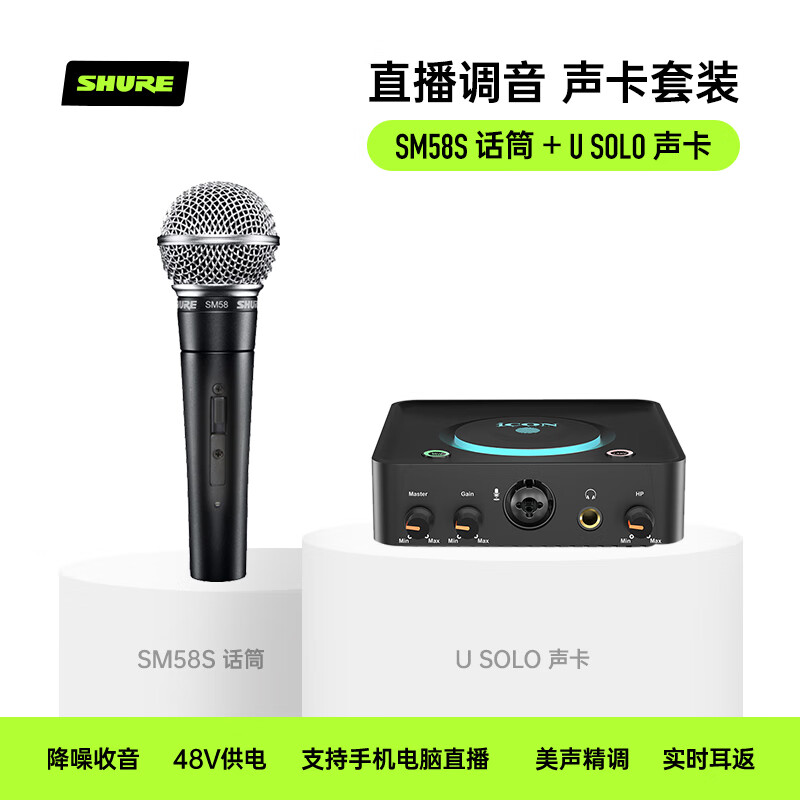 SHURE sm58s 动圈麦套餐 U solo声卡外置声卡电脑主播唱歌直播全套游戏录音麦克风专业有声书设备套装价格:1525.40元!