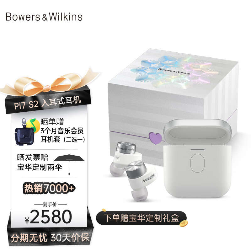 宝华韦健Bowers&Wilkins(B&W) Pi7二代礼盒版 真无线主动降噪HIFI运动蓝牙耳机 音乐入耳式智能消噪皓月白价格:2580.00元!