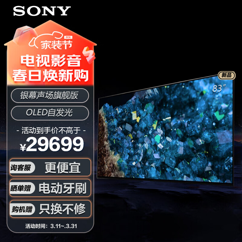 索尼(SONY)XR-83A80L 83英寸 OLED自发光 屏幕发声 安卓智能电视 XR认知芯片游戏增强器价格:29699.00元!