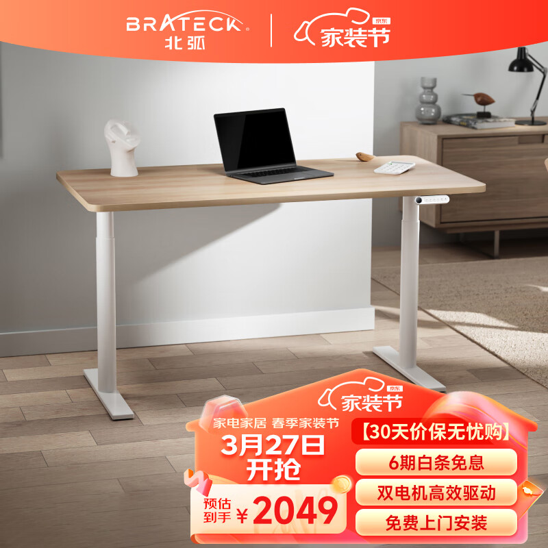 Brateck双电机电动升降电脑桌 北弧站立办公升降书桌 升降台 M1黄1.5米价格:2449.00元!