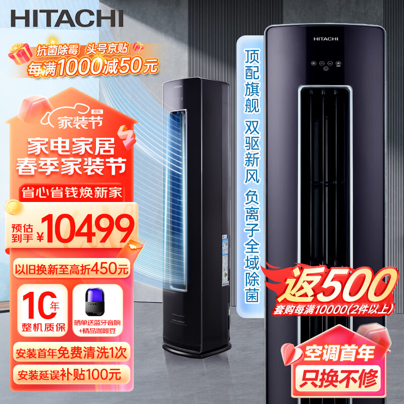 日立(HITACHI)白熊君新1级能效3匹圆柱式柜机立式空调节能双驱新风全域除菌智能wifi以旧换新RAF/C-ZH30PHAPC价格:10999.00元!
