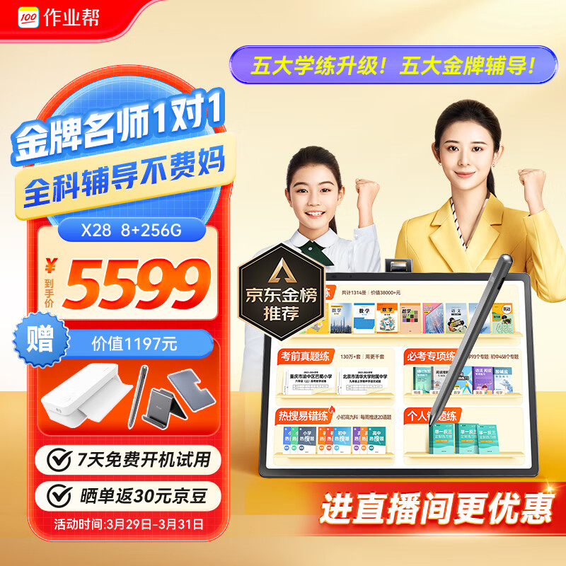 作业帮AI学习机X28金牌辅导学练版 小学到高中学习平板电脑 教材同步学练机 第3代护眼屏13.7'' 8+256G价格:5599.00元!