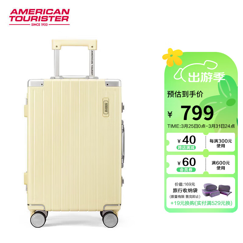 美旅箱包时尚复古拉杆箱顺滑飞机轮行李箱20英寸TSA轻便旅行密码箱TI1黄色价格:1159.00元!