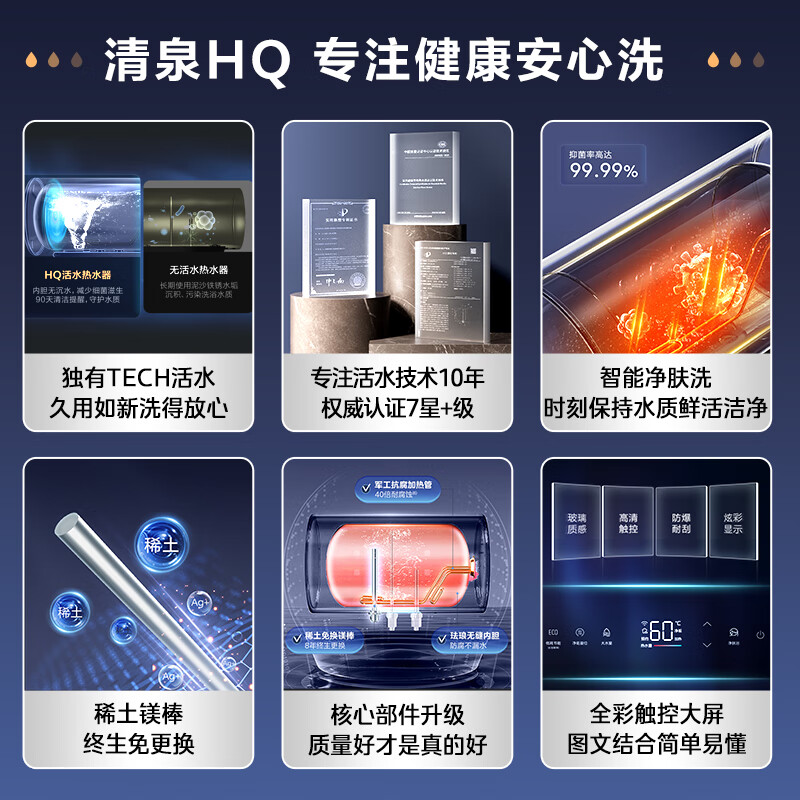 特征特质:珐琅无缝内胆,镁棒免更换,不结水垢