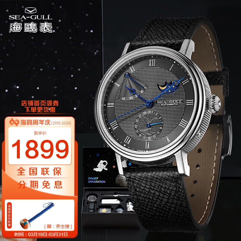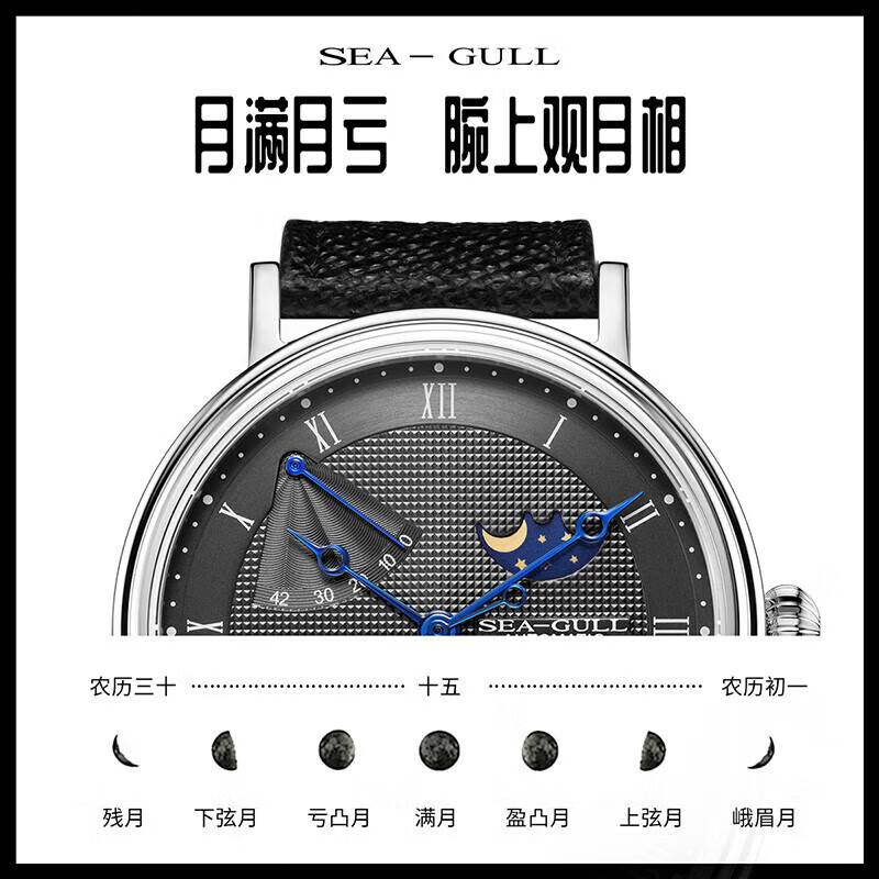 海鸥(SEAGULL)手表男士自动机械表 男表送男友礼物 月相腕表文创礼盒(玄夜)价格:2099.00元!