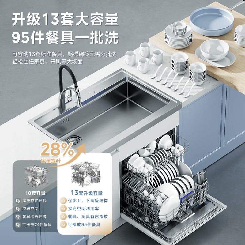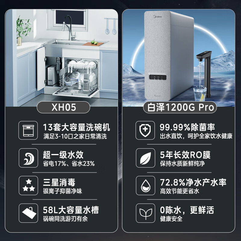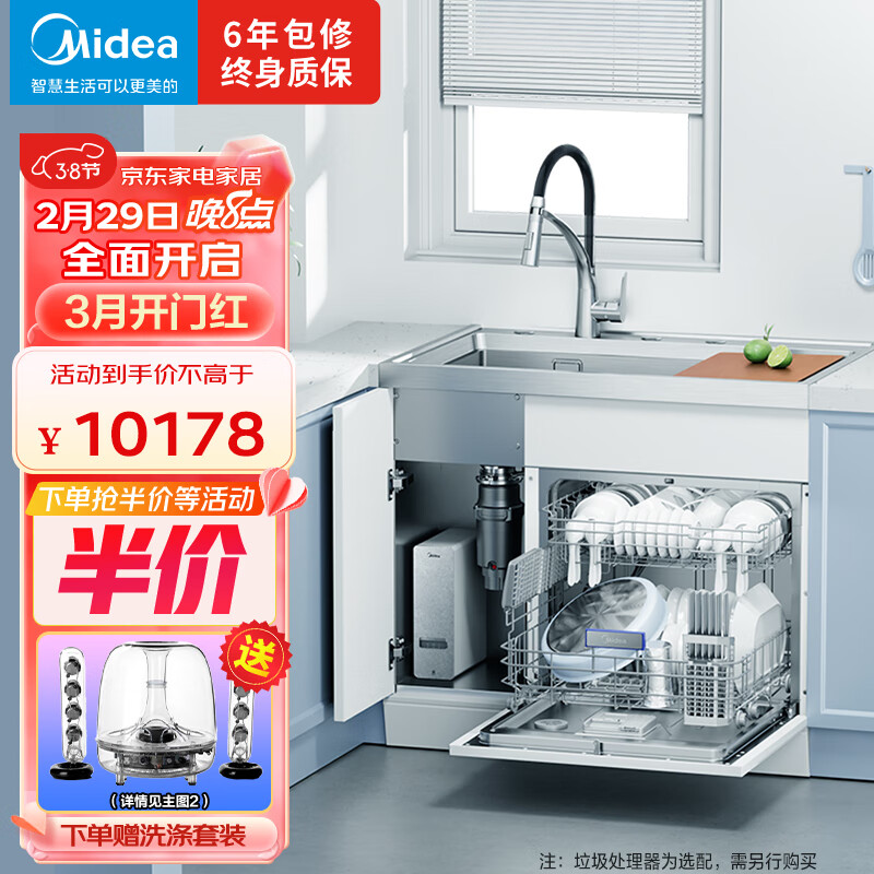 美的(Midea)集成水槽变频洗碗机集成洗碗机 集成洗碗机XH05搭配净水器白泽1200G Pro家用净水机价格:11378.00元!
