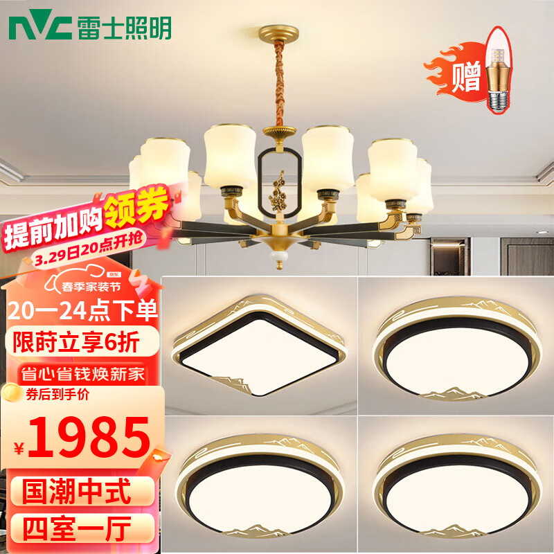 雷士(NVC)新中式吊灯古典国潮客厅灯简约现代灯具10头四室一厅NDBD10A-001价格:3657.00元!