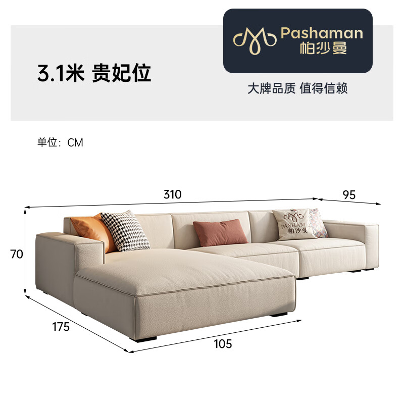 帕沙曼 猫抓布艺沙发现代简约大户客厅奶油风豆腐块科技布贵妃3.1米3185价格:3544.00元!