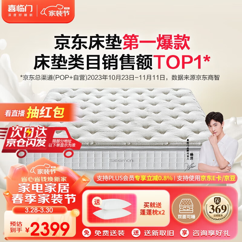 喜临门床垫 2cm高纯乳胶独袋弹簧床垫 3D黄麻床垫 白骑士plus 1.5x2米价格:2399.00元!