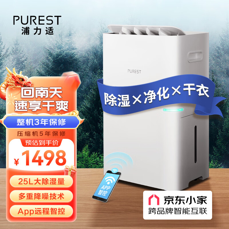 浦力适(PUREST) 除湿机/抽湿机 25升/天家用轻音降噪抽湿器 除湿净化干衣合一抽湿机 京东小家智联价格:1398.00元!