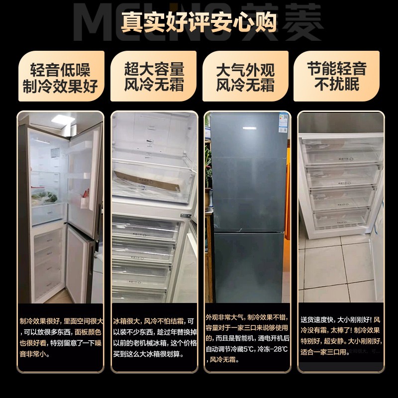 说实话这款美菱BCD-308WECX很喜欢这个外观,质量挺好的,物流速度快,包装完好无损,整个购物体验非常满意。