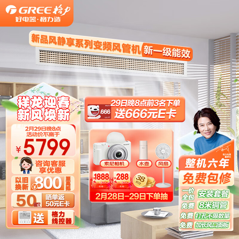 格力(GREE)中央空调 风管机一拖一 K+风静享 大1匹家用嵌入式空调1级能效FJR2.6Pd/Cb4Nh-N1京派(一价全包)价格:5799.00元!