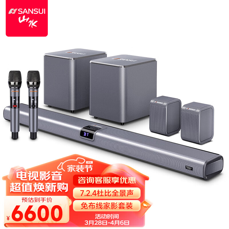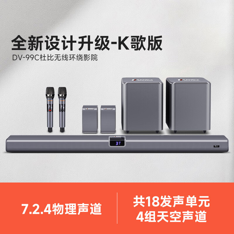 山水(SANSUI)DV-99C 7.2.4杜比全景声回音壁 家庭KTV音响套装 电视投影仪音响价格:6600.00元!