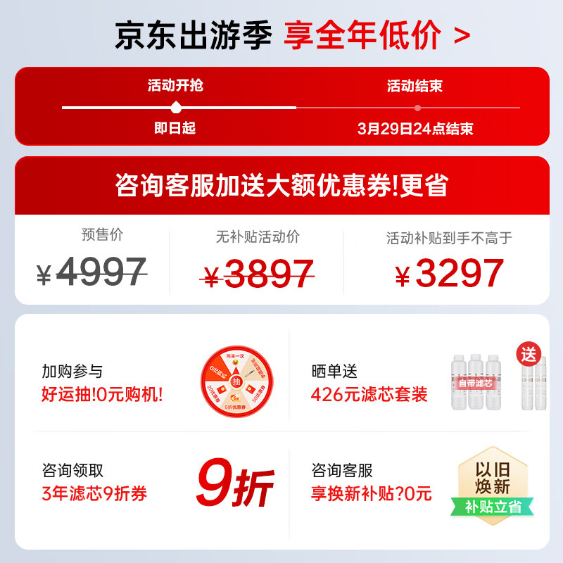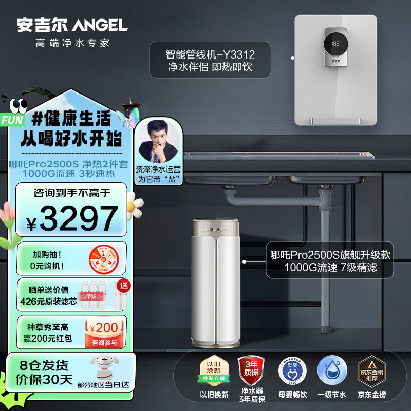 安吉尔净水器家用直饮哪吒Pro2500S升级款 1000G流速体验2.56L/min 自来水过滤器 反渗透厨房纯水机 【1000G流速净水器+3秒速热管线机】2件套装价格:3296.00元!