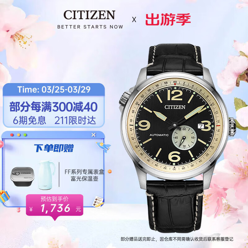 西铁城(CITIZEN)手表男日韩表FF系列自动机械皮带商务学生送礼物男友NJ0140-17E价格:2480.00元!