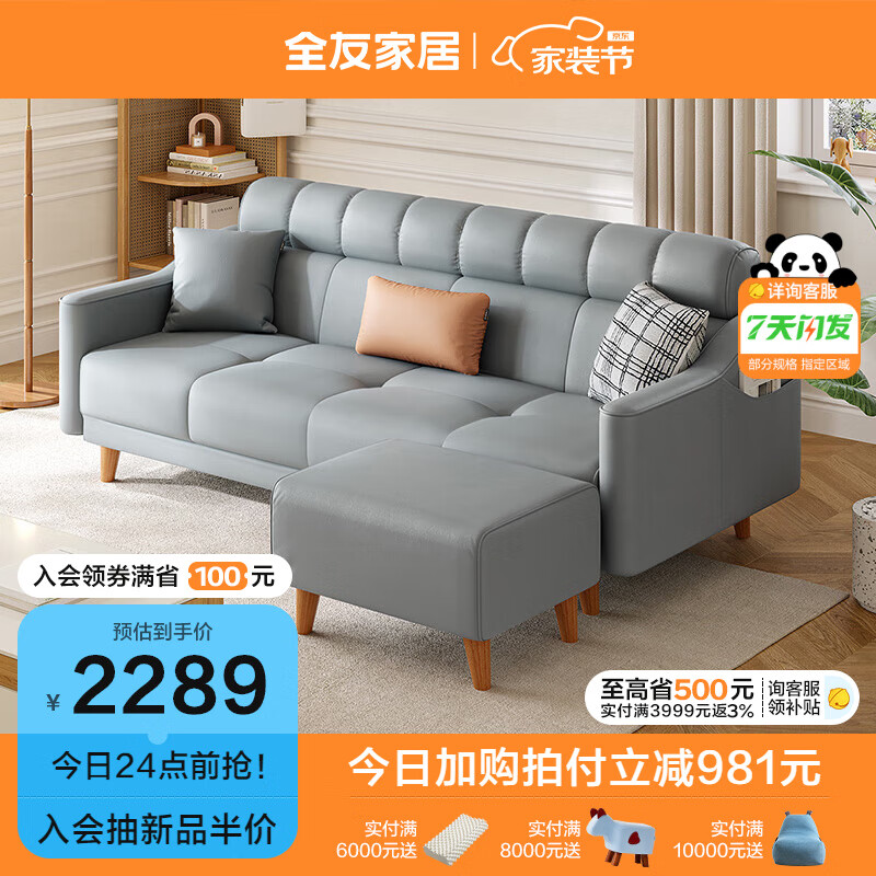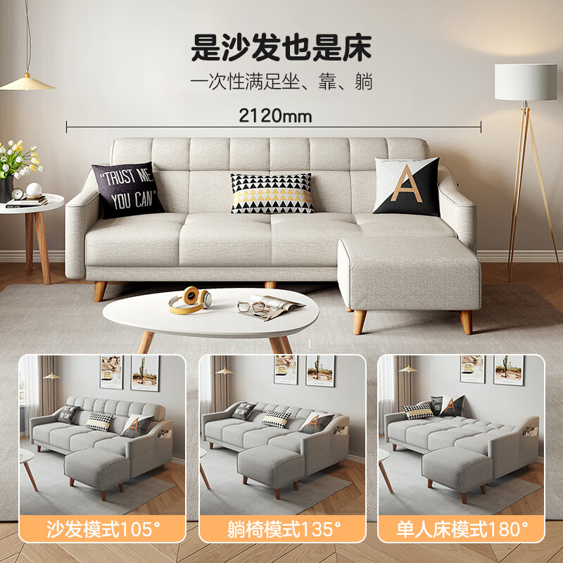 全友家居 现代简约布艺沙发客厅三人位小户型可折叠沙发床两用102265价格:3270.00元!
