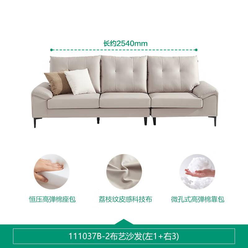 全友家居 科技布沙发客厅简约现代奶油风小户型直排式布艺沙发111037价格:3141.43元!