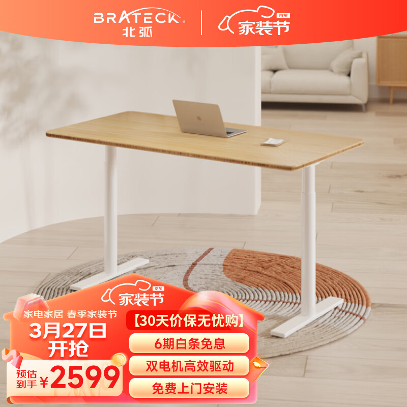 Brateck双电机电动升降电脑桌 北弧站立办公升降书桌 升降台 M1竹木1.5价格:3099.00元!