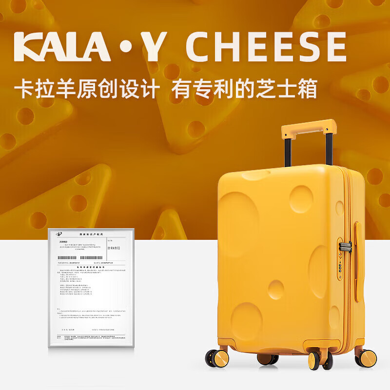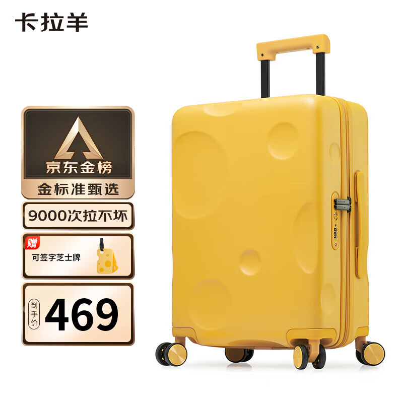 卡拉羊芝士箱防刮纯PC行李箱24英寸大容量女拉杆箱男旅行箱8109芝士黄价格:569.00元!
