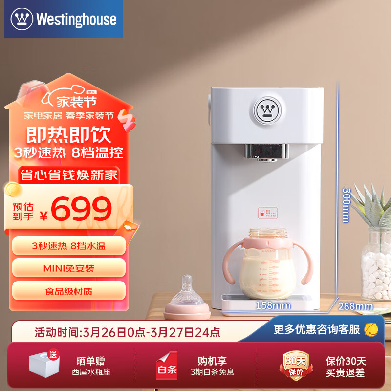 西屋(Westinghouse)台式即热式饮水机小型饮水机家用 办公台式客厅台面即热饮水机 免安装一键速热恒温直饮机 WFH30-W2饮水机 即热型价格:899.00元!