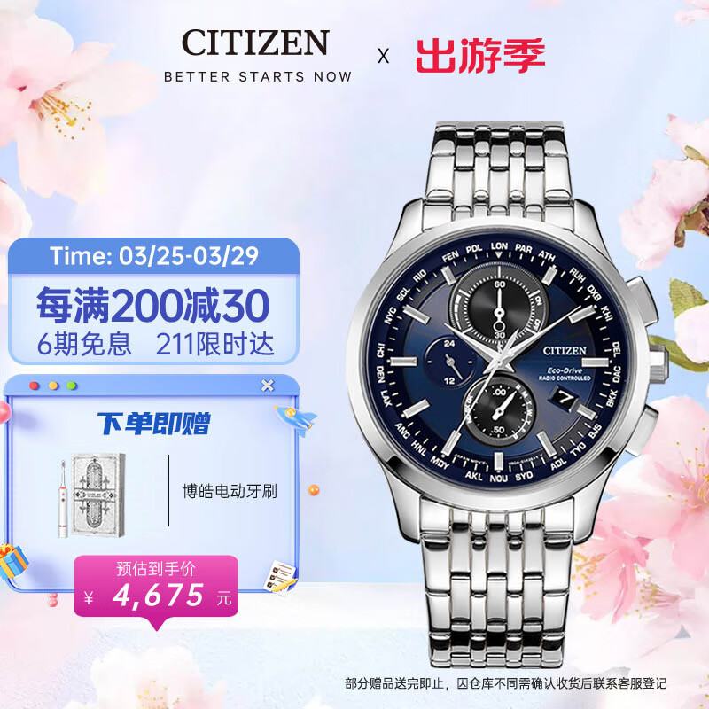 西铁城(CITIZEN)手表男日韩表光动能电波日期显示钢带商务送礼物男友AT8110-61L价格:5195.00元!
