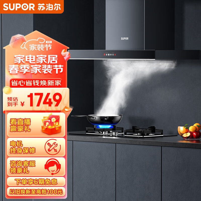 苏泊尔(SUPOR) 抽油烟机 烟灶套装22立方家用欧式吸油烟机燃气灶具套装挥手智控 自清洁 DT32+DB27天价格:1849.00元!