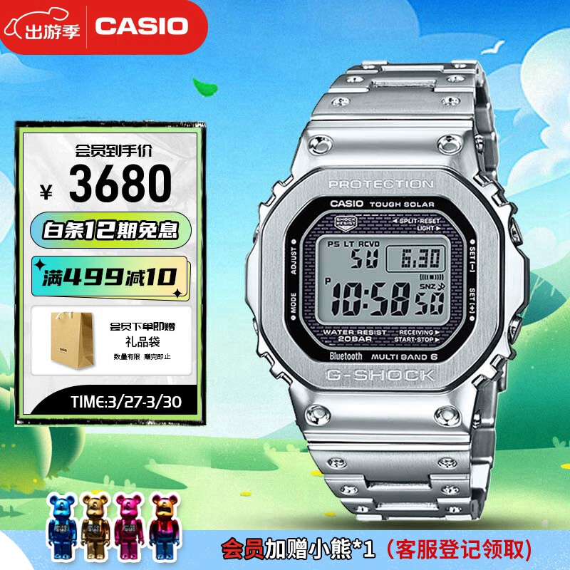 卡西欧(CASIO)手表男士G-SHOCK经典小方块小银块电子日韩表GMW-B5000D-1PRT价格:3690.00元!