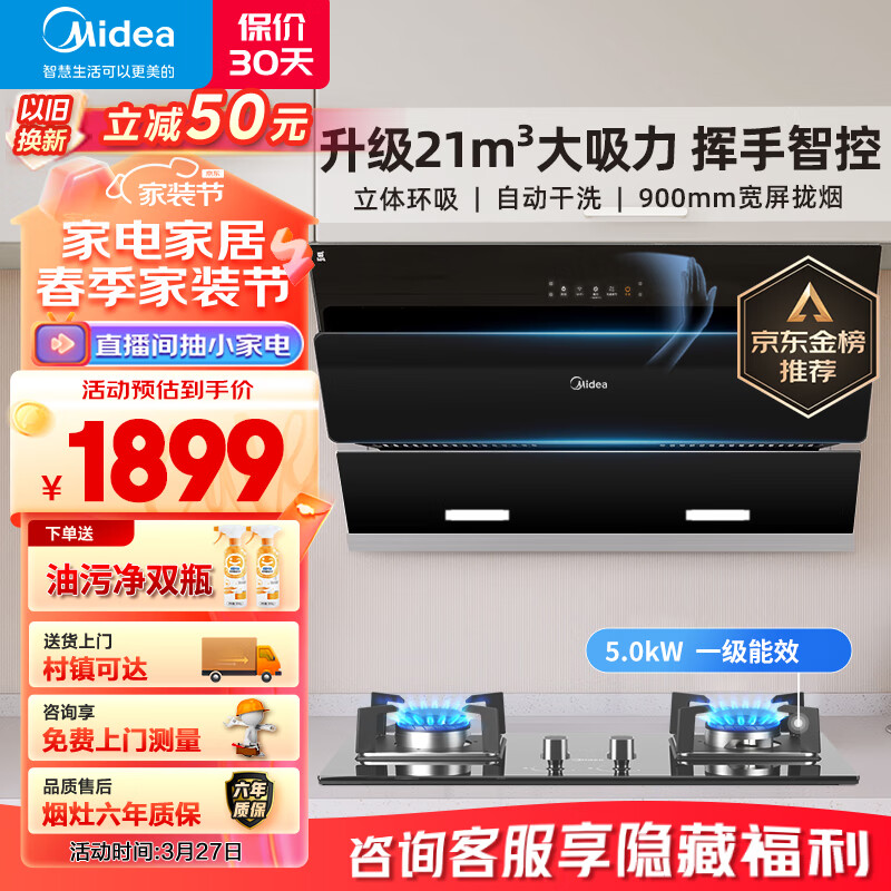 美的(Midea)抽油烟机燃气灶套装小户型厨房烟灶套装 21大吸力自动清洗油烟机灶具套装J25S+Q330液化气价格:1899.00元!