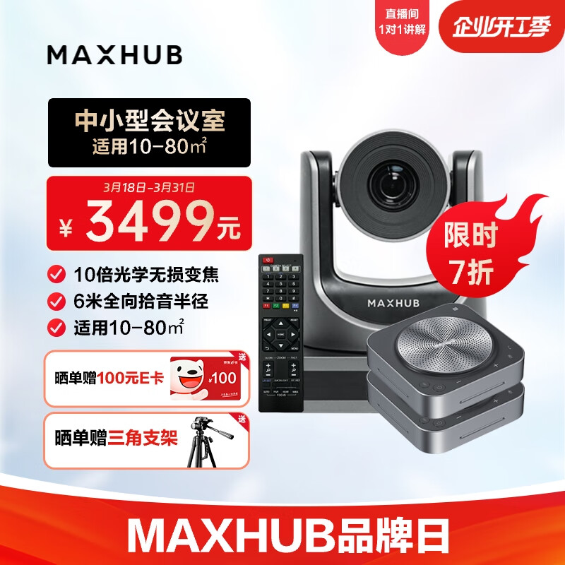 MAXHUB视频会议套装6米拾音半径全向麦克风BM31*2+1080P高清摄像头SC51S云台可旋转10倍高清光学变焦价格:3499.00元!