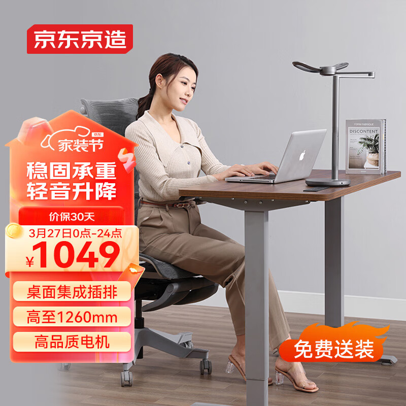 京东京造电动升降电脑桌 书桌 学习桌 单电机1.2m胡桃木色价格:1149.00元!