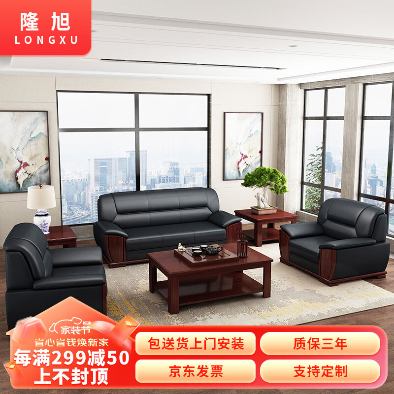 隆旭办公家具办公沙发组合办公室会客接待商务皮沙发牛皮3+1+1价格:4650.00元!
