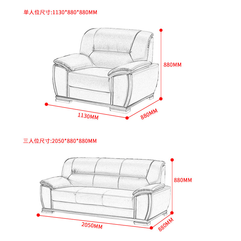 隆旭办公沙发配置参数: