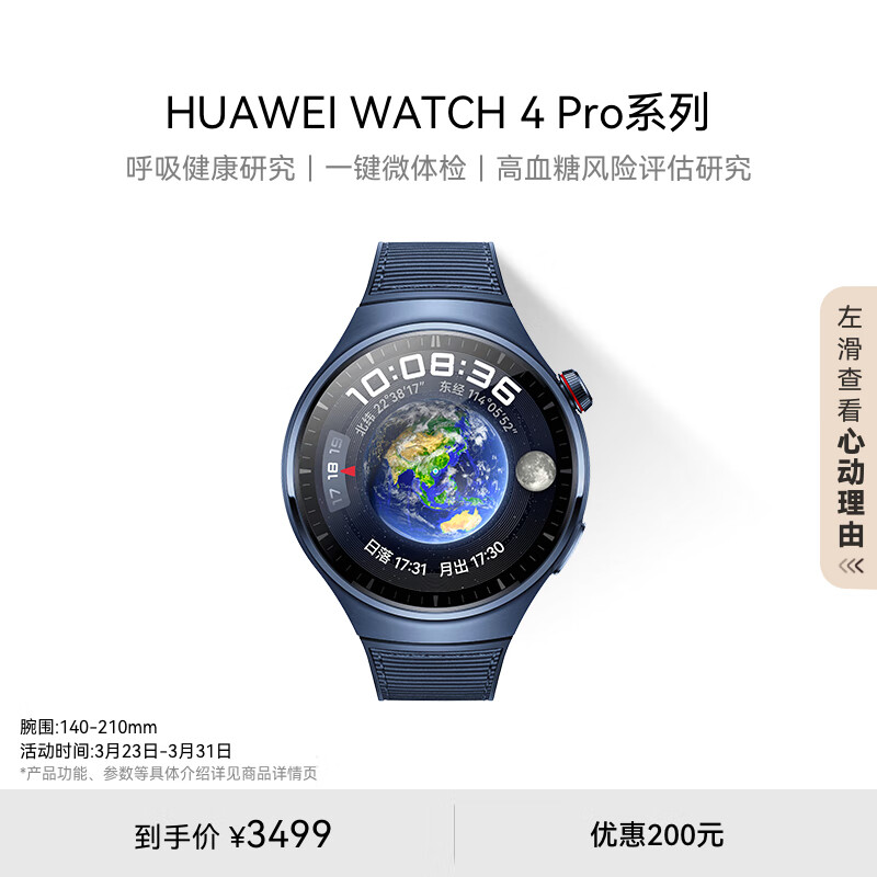 华为WATCH 4 Pro华为手表智能手表呼吸健康研究华为运动手表蔚蓝地球支持龙年表盘价格:3649.00元!