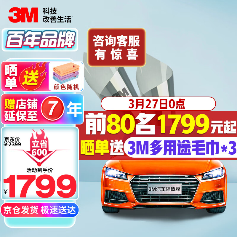 3M汽车贴膜 朗清系列 MPV汽车玻璃车膜太阳膜隔热膜车窗膜备注深浅 国际品牌价格:2399.00元!