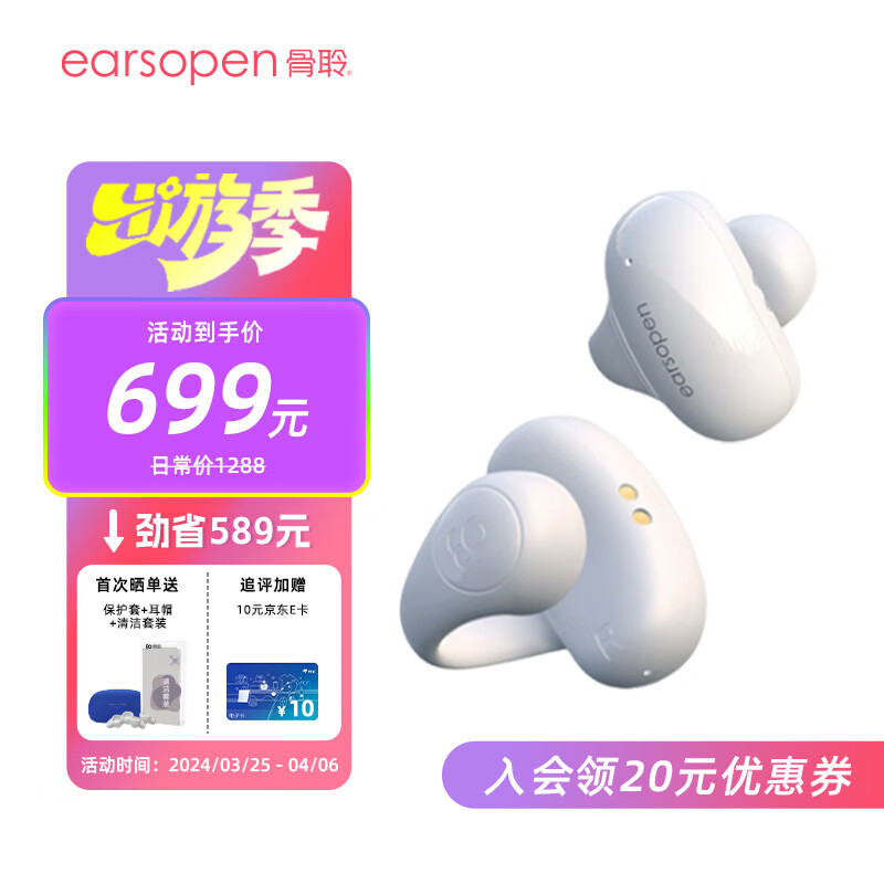 earsopen骨聆SS900经典款骨传导蓝牙耳机开放式不入耳耳机耳骨传导耳机运动跑步耳机 白色价格:1288.00元!