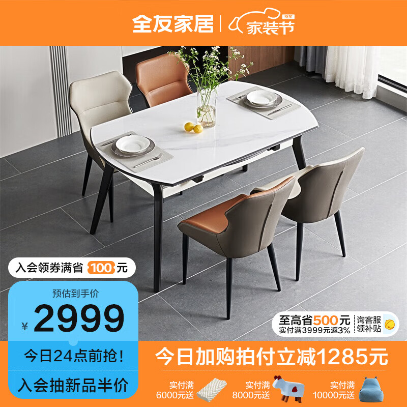 全友家居?轻奢钢化玻璃折叠餐桌椅组合可伸缩家用桌子饭桌家具DW1059价格:4284.29元!