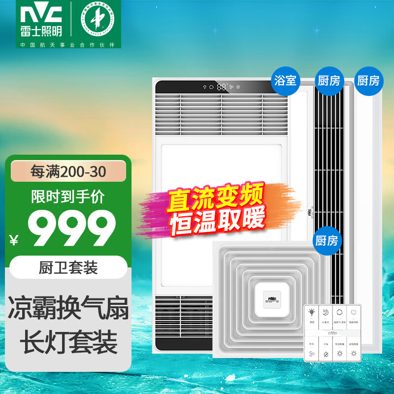 雷士(NVC)八合一智能风暖浴霸排气扇照明一体暖风机浴室取暖器厨卫套餐D价格:1149.00元!