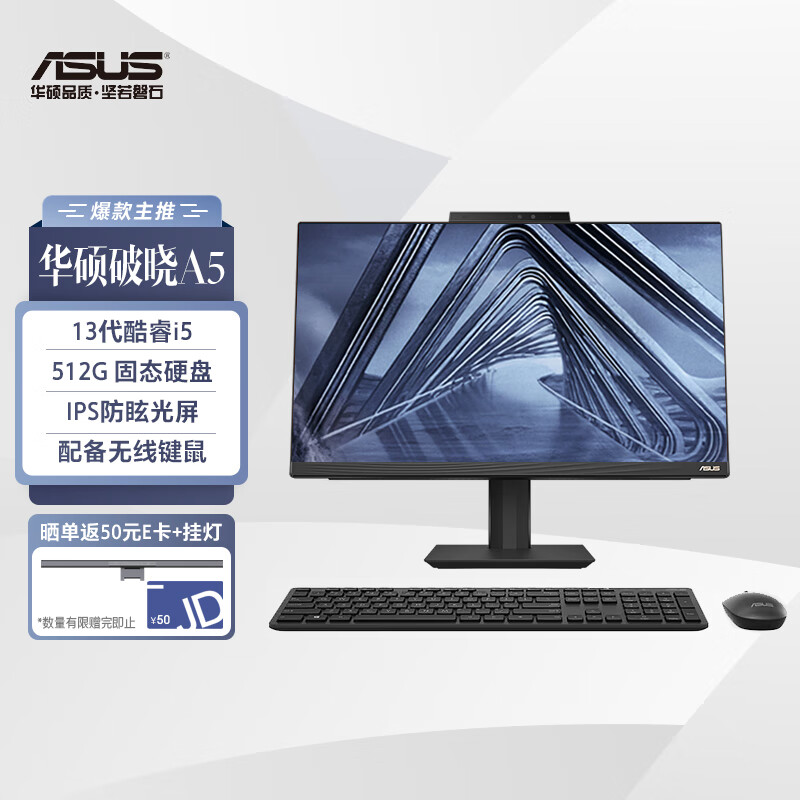 华硕破晓A5 27英寸 家用商用一体机电脑台式电脑(13代i5-1340P 16G 512GSSD WiFi6 摄像头)黑色价格:4999.00元!