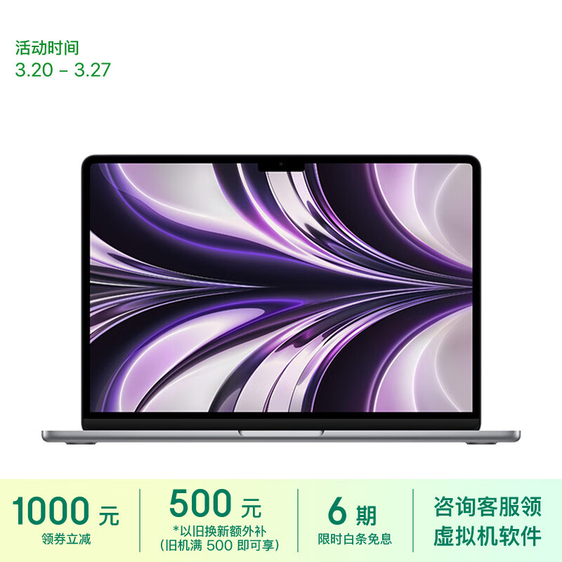 Apple/苹果2022款MacBookAir13.6英寸M2(8+10核)8G512G深空灰轻薄笔记本电脑MLXX3CH/A价格:11499.00元!