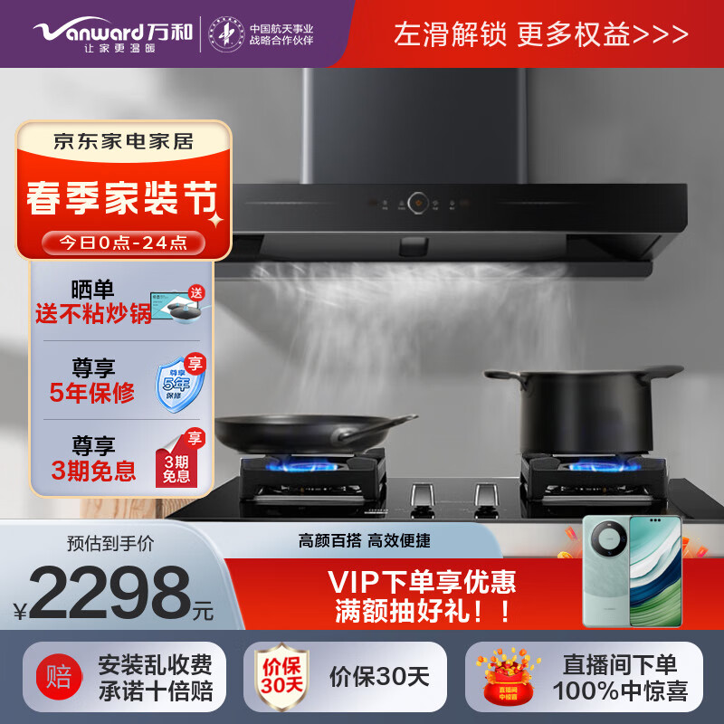 万和(Vanward)欧式油烟机顶吸式 家用自清洗 22m3/min大吸力烟灶套餐抽油烟机燃气灶具套装 X739A+T9L96(天然气)价格:2298.00元!