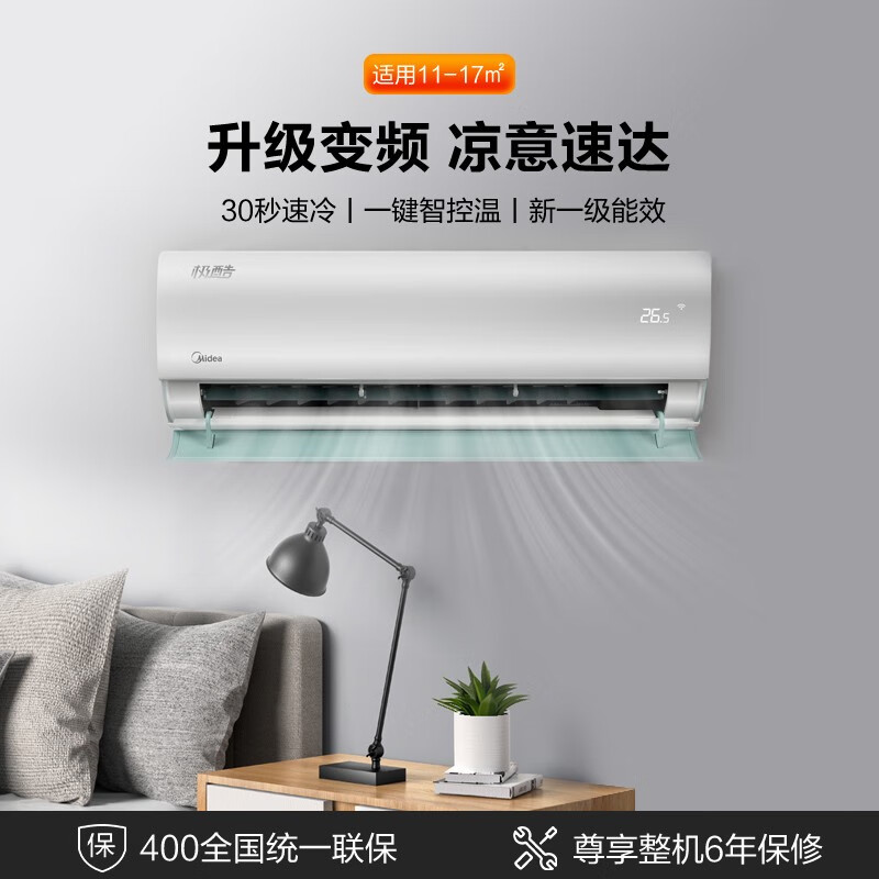 美的(Midea)极酷 大1匹 新一级能效变频冷暖 防直吹 智能家电 家用卧室空调挂机 KFR-26GW/N8VHA1 多仓直发价格:2449.00元!