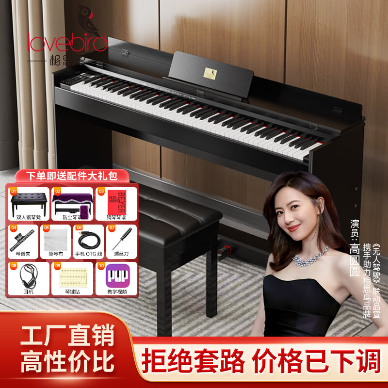 相思鸟电钢琴88键重锤数码钢琴智能家用初学者立式电子钢琴 木纹黑色价格:1699.00元!