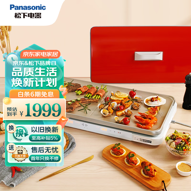 松下(Panasonic)红色 多用途锅 聚嗨盘 网红锅 多功能锅 料理烧烤火锅一体锅 左右独立控温 NF-M1-R价格:1999.00元!
