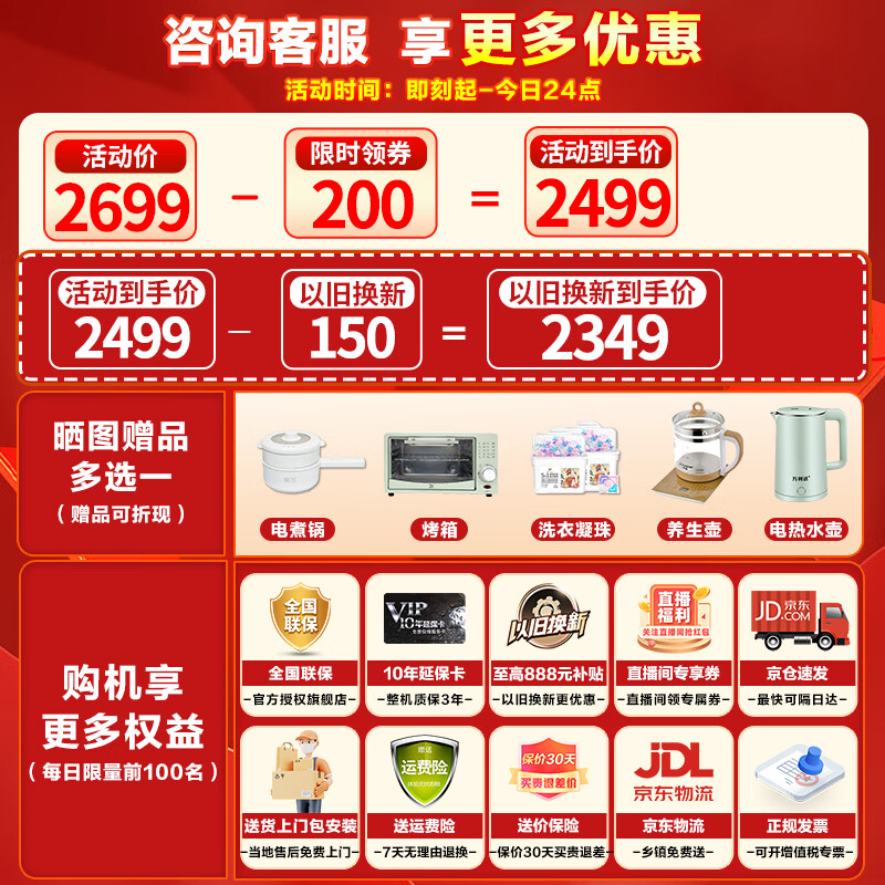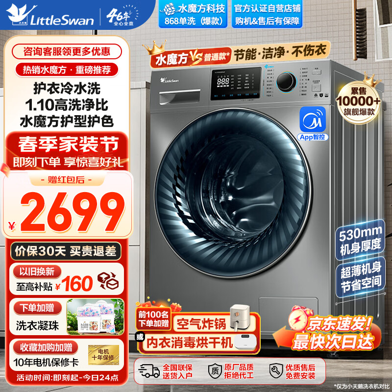 小天鹅(LittleSwan)水魔方滚筒洗衣机10公斤全自动家用变频 防缠绕 冷水洗护色护形TG100V868WMADY价格:2599.00元!