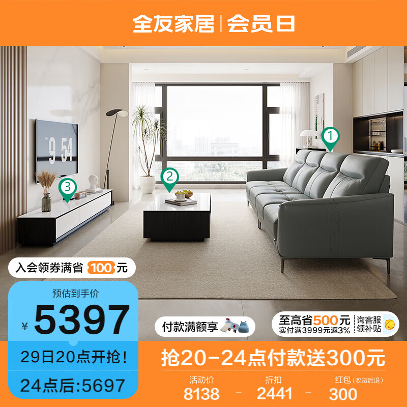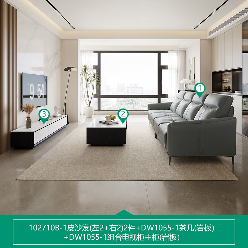 全友家居 简约客厅3件套装102710皮沙发岩板茶几电视柜主柜客厅家具价格:8138.57元!