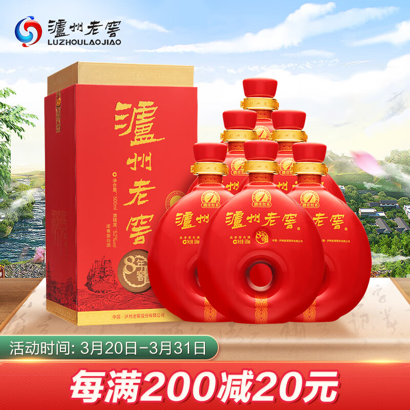 泸州老窖 八年窖头曲 酒庄红八1号 浓香型白酒 52度500ml*6瓶 整箱装价格:1748.00元!