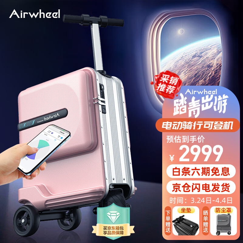 Airwheel爱尔威电动行李箱代步登机拉杆箱骑行铝框旅行箱20英寸男女儿童箱价格:2999.00元!